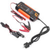 Компактное зарядное устройство для свинцово-кислотных АКБ 12В. Особенности устройства — 9-ступенчатая зарядка, режим восстановления батареи, подзарядка аккумулятора при температуре ниже +5 градусов. Зажимы универсальные на любые клеммы автомобильных аккумуляторов. Встроенный микропроцессор для контроля параметров заряжания и диагностики неисправностей. Подходит только для свинцово-кислотных АКБ любого типа (WET, AGM, GEL) – микропроцессор позволяет установить для каждого типа свой режим. Кроме того, устройство автоматически очищает клеммы от сульфатов, которые остаются на них в процессе электролиза и заряжает потекшие батареи. Рабочие характеристики не снижаются при низких температурах. Устройство может сколь угодно долго оставаться подключенным к аккумулятору, поддерживая требуемый заряд. Оно оснащено защитой от короткого замыкания и образования искр. Зарядное устройство имеет три вида контактных клемм: зажимы, разъем для подключения к прикуривателю и кольцо (петелька).